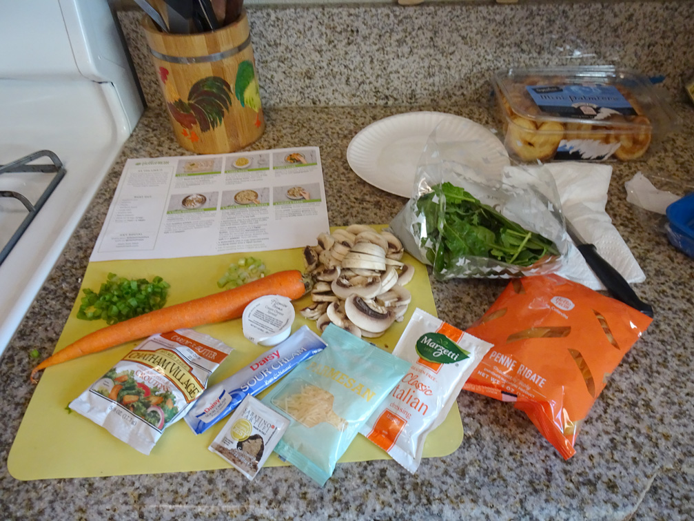 Tonight we are going to have "Mushroom Penne with Truffle Cream Sauce" No idea how it will taste. Other two meals are more normal - Bruschetta Chicken and Chicken sausage Spaghetti Bolognese. Everything but the meat is in the bags.