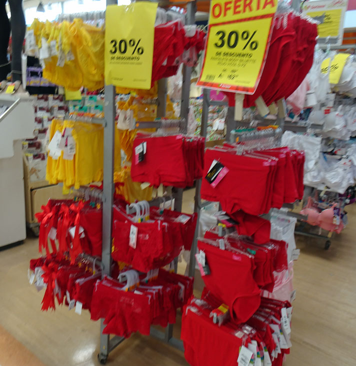 Always have to laugh about the red and yellow underwear. Yes, years ago it was right in your face when you entered a store just as you said.