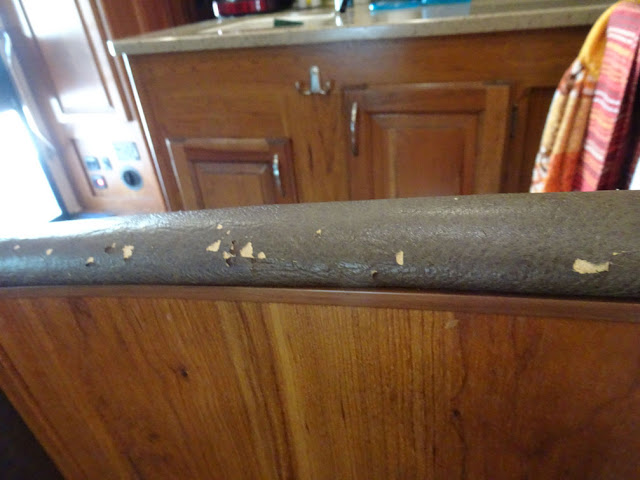 Going back a few days. Tuesday and Wednesday - it is a good thing I keep a kind of journal or I wouldn't remember what we did when we did it. Tuesday the upholsterer Jorge came. His truck.(See the empty campground. The people next to us left a week ago. The two rigs that needed mechanical work have been fixed so they will be leaving soon so that will leave two of us here in the back and two in the front. )
