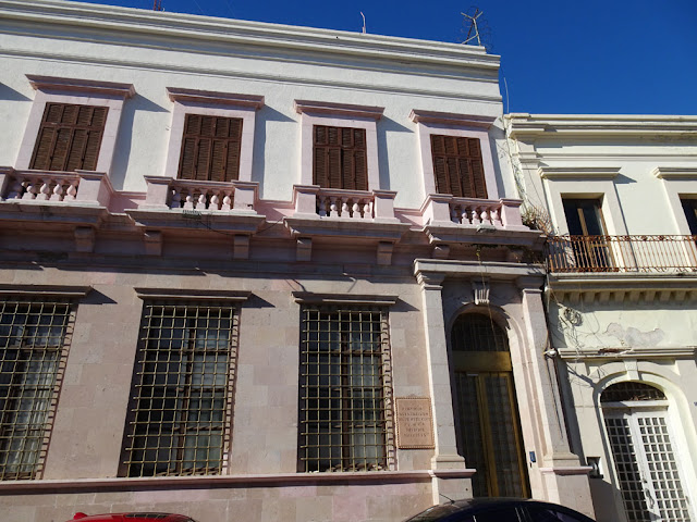 We also parked in a different, to us, parking lot. 30 pesos an hour about US$1.50. The parking lot is in this building. Well in where the building used to be. All that is left of the building are these walls.The name of the building and when it was built. Must have been beautiful at that time. According to the parking lot owner at one time there was a tunnel under it that led to the ocean. And pirates stored their loot in the tunnel...(why do people like to vandalize things?)